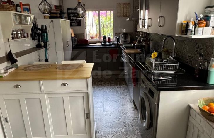 Semi-detached house with three bedrooms and three levels, located between Sierra Blanca and Nagueles in a private residential area on the Golden Mile, a highly residential area with excellent transport links, just a few kilometers from Marbella town center and Puerto Banús. The entrance level features a foyer with Lumon windows, a guest toilet, a fully equipped and renovated kitchen, and a spacious living room with a dining area and fireplace, which leads to a large terrace. On the first floor, there are two good-sized bedrooms with en-suite bathrooms and a pleasant terrace with sea and mountain views. Amenities include solar panels for hot water, outdoor parking, a paddle tennis court, a large swimming pool, and a children’s play area. Video surveillance is also in place.