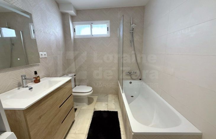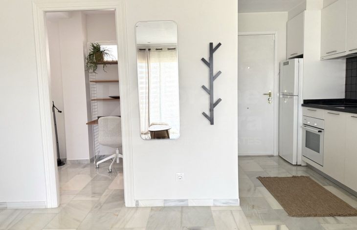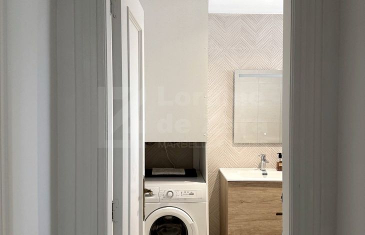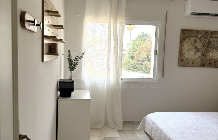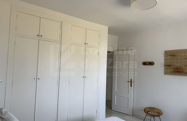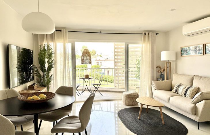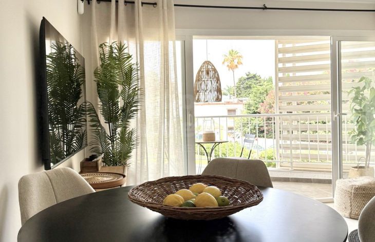 Spectacular beachfront apartment with direct access to the San Pedro promenade, renovated in 2024, located in the Lindavista area, surrounded by all kinds of amenities, schools, shops, a beach club, and just steps from the sea. Very bright and contemporary in style, it comprises an entrance hall, a spacious living room with a dining area and an open-plan, fully equipped kitchen, two exterior bedrooms, a bathroom, and a terrace with sea views, accessed from the living room.