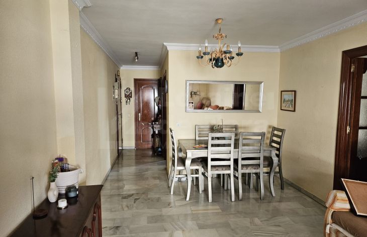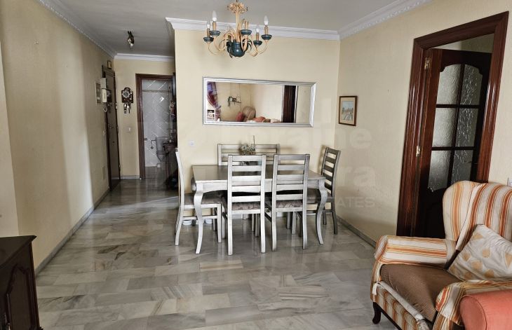 Spacious four-bedroom apartment located in a well-established building in the sought-after Miraflores area of Marbella, just a 10-minute walk from Ricardo Soriano, surrounded by all kinds of amenities, shops, schools, restaurants, hairdressers, etc. The apartment comprises an entrance hall, a large living room with a dining area and access to an open terrace, a separate fully equipped kitchen with a separate utility room, four exterior bedrooms, and two separate bathrooms, one with a walk-in shower. Elevator. Ideal for owning or as a secure rental investment.