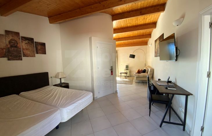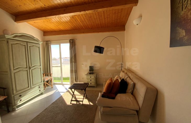 This property comprises 3 distinct floors. On the ground floor, there is a large entrance hall and a living room with air conditioning, a separate dining room with access to the upper floor, as well as a bright and fully equipped kitchen, connected to another living room with air conditioning and access to the magnificent patio of over 50 m2 with a barbecue area and a small storage room, as well as stairs leading directly to one of the 2 bedrooms on the first floor, both with en-suite bathrooms, dressing rooms, and air conditioning. One of them has a private terrace accessible directly from the patio. On the second floor, we find a spacious suite with an en-suite bathroom, wood-paneled ceilings, air conditioning, two small terraces (one with sea views), and a small sitting room. Two hundred meters of Marbella history!