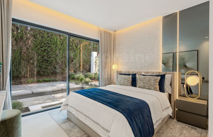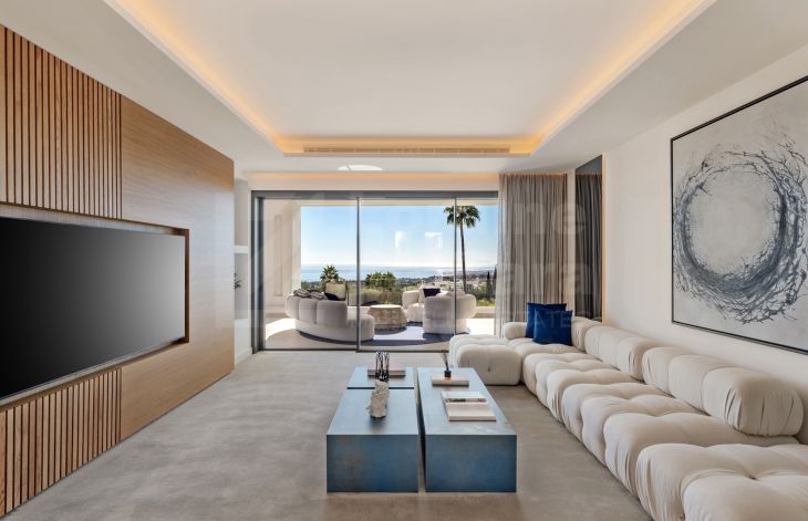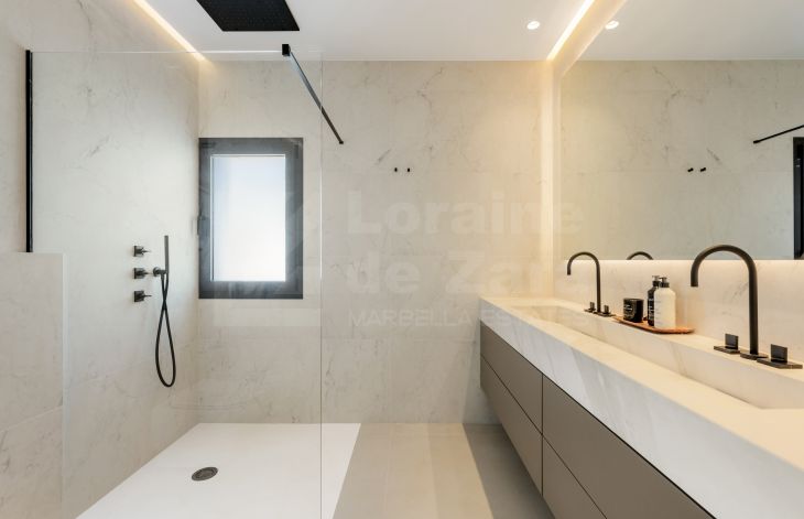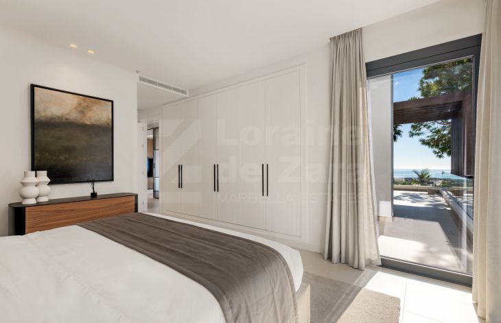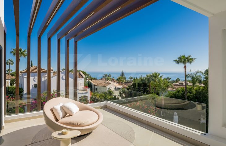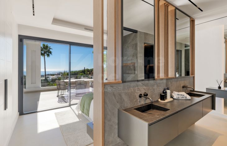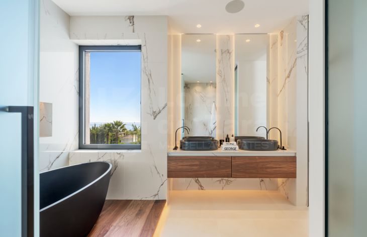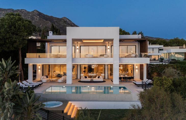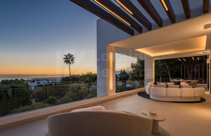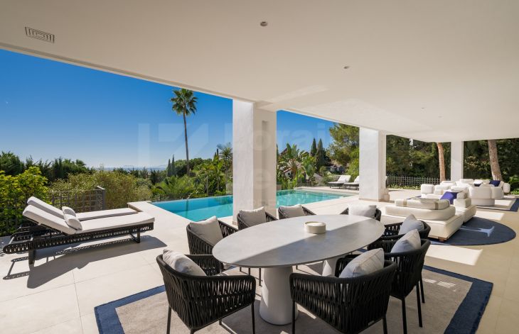 Espectacular ubicación la de esta selecta villa, con vistas al mar, en la ladera de la montaña de La Concha en una exclusiva urbanización privada, Sierra Blanca, en La Milla de Oro marbellí, donde existe una combinación de tranquilidad, entorno natural cercanía a los lugares más icónicos de la ciudad, a solo unos minutos de centro de Marbella, el casco antiguo, puente Romano y Puerto Banús. La villa ha sido renovada al 100% en 2025. Los muebles se venden por separado en 350.000€ más iva. Aerotermia, sistema de riego automático, pueras de cristal, armarios emptrados, zona de lavandería, cocina equipada abierta al salón, seguridad 24 horas, bodega, aire acondicionado, barbacoa, doble acristalamiento, aseo para invitados, suelos de mármol, sauna, gimnasio, suelos radiantes, alarma, sótano, amueblada, cámaras de vigilancia, sala de cine, chimenea, comunidad privada, jacuzzi, baño turco, vestidor, gres porcelánico, etc.