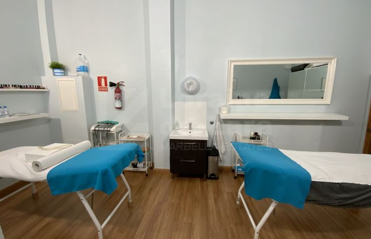Amplio local comercial en estado impecable situado en la zona de Divina Pastora y rodeado de todo tipo de servicios, a solo unos metros de la playa y cualquier punto de Marbella, así como de la playa. Actualmente funciona desde hace mas de 15 años como centro estético o de belleza dotado de una elegante zona de recepción y pequeña sala de espera, altillo para oficina/almacenaje/trastero y cabinas independientes, una de ellas doble.