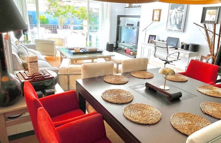 Magnífico apartamento de tres dormitorios situado en una de las mejores urbanizaciones de Rio Real, en Marbella este, a solo cinco minutos de la playa de Los Monteros y del centro de Marbella. El apartamento tiene un salón moderno y espacioso con acceso a la gran terraza de 61 m² con vistas a las piscinas y jardines tropicales comunitarios. El apartamento consta de dos dormitorios en suite y un aseo para invitados. Existe un dormitorio adicional ideado para el servicio. Amplia cocina equipada y con zona de desayuno. Suelos de mármol, aire acondicionado, caja fuerte, garaje y trastero. Campo de golf cercano a 100 m del complejo.