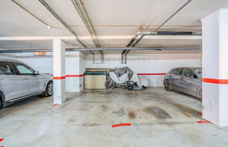 Impecable apartamento de tres dormitorios con garajes situado en una urbanización privada dotada de cámaras de seguridad 24 horas, jardines cuidados y piscina comunitaria, a solo cinco minutos en coche del centro de Marbella, Puerto Banús y la playa. Muy bien comunidaco por su fácil acceso a la autopista. Rodeado de prestigiosas escuelas tales como Aloha College y Swans, por lo que está ubicado en una zona excelente junto a Sierra Blanca. El apartamento dispone de 140 m²construidos mas 34 m² de terrazas distribuidos en hall de entrada, cocina independiente y equipada con lavadero, gran salón comedor con acceso a una espaciosa terraza con vistas a los floridos jardines y a la piscina. Tres dormitorios, dos de ellos en suite, todos ellos con armarios empotrados, muy luminosos gracias al acceso a la terraza de dos de ellos y al gran ventanal que ogrece el tercer dormitorio.