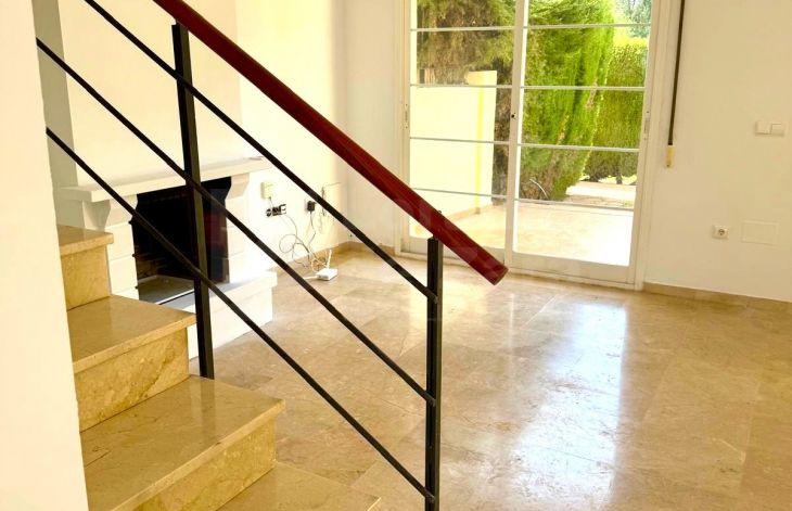 Casa adosada de tres plantas y provista de garaje y jardín privado de tres dormitorios situada en la zona de Los Naranjos, Nueva Andalucía, rodeado de los campos de golf mas punteros de la zona. La vivienda consta de tres plantas. En la planta baja dispone de amplia cocina con posibilidad de abrirla al salón, aseo de cortesía, luminoso salón con zona comedor y con acceso directo a la gran terraza con jardín de uso privado. En la primera planta encontramos dos dormitorios dobles y un baño completo. Provista del dormitorio principal con baño en suite. Esta propiedad dispone de parking delantero. Cerca de todos los servicios, colegios, restaurantes y apocos minutos de Puerto Banús, así como de la playa.